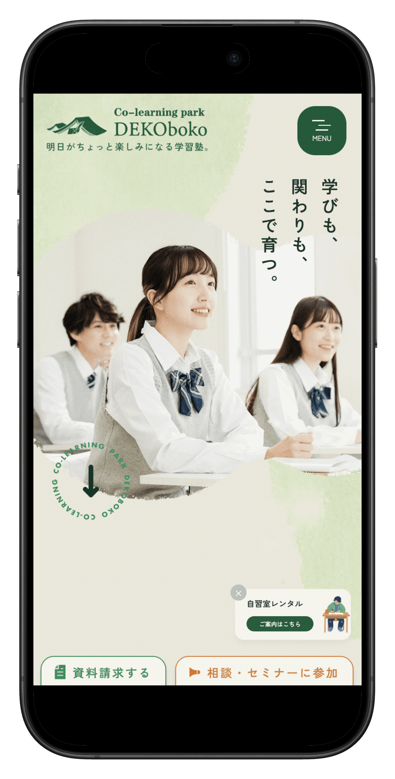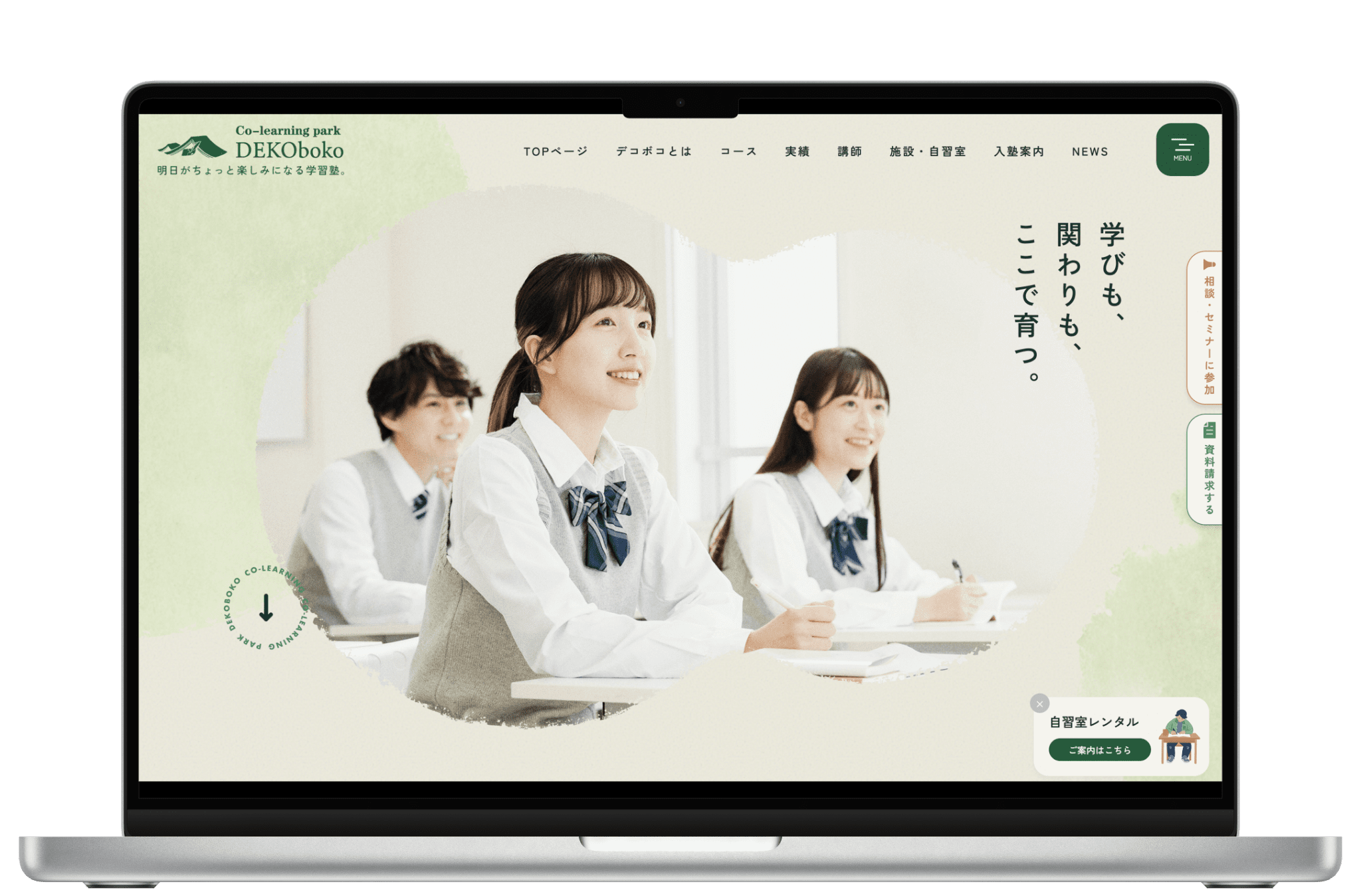 また、入塾前に不安や疑問を解消できるよう、個別相談・体験・セミナーへの導線を明確に設計。保護者・生徒ともに、安心して次の一歩へ進めるサービスサイトとなっています。